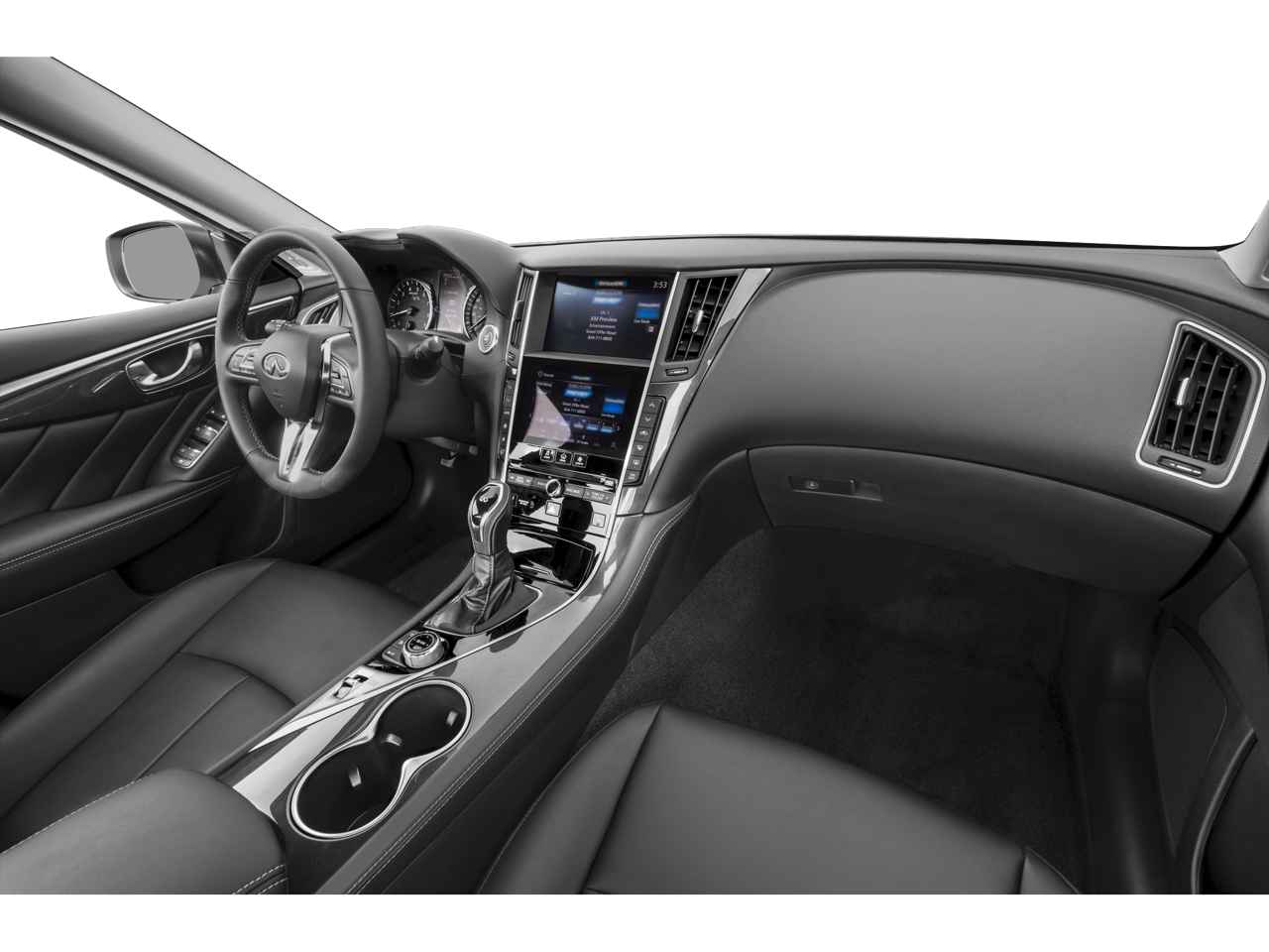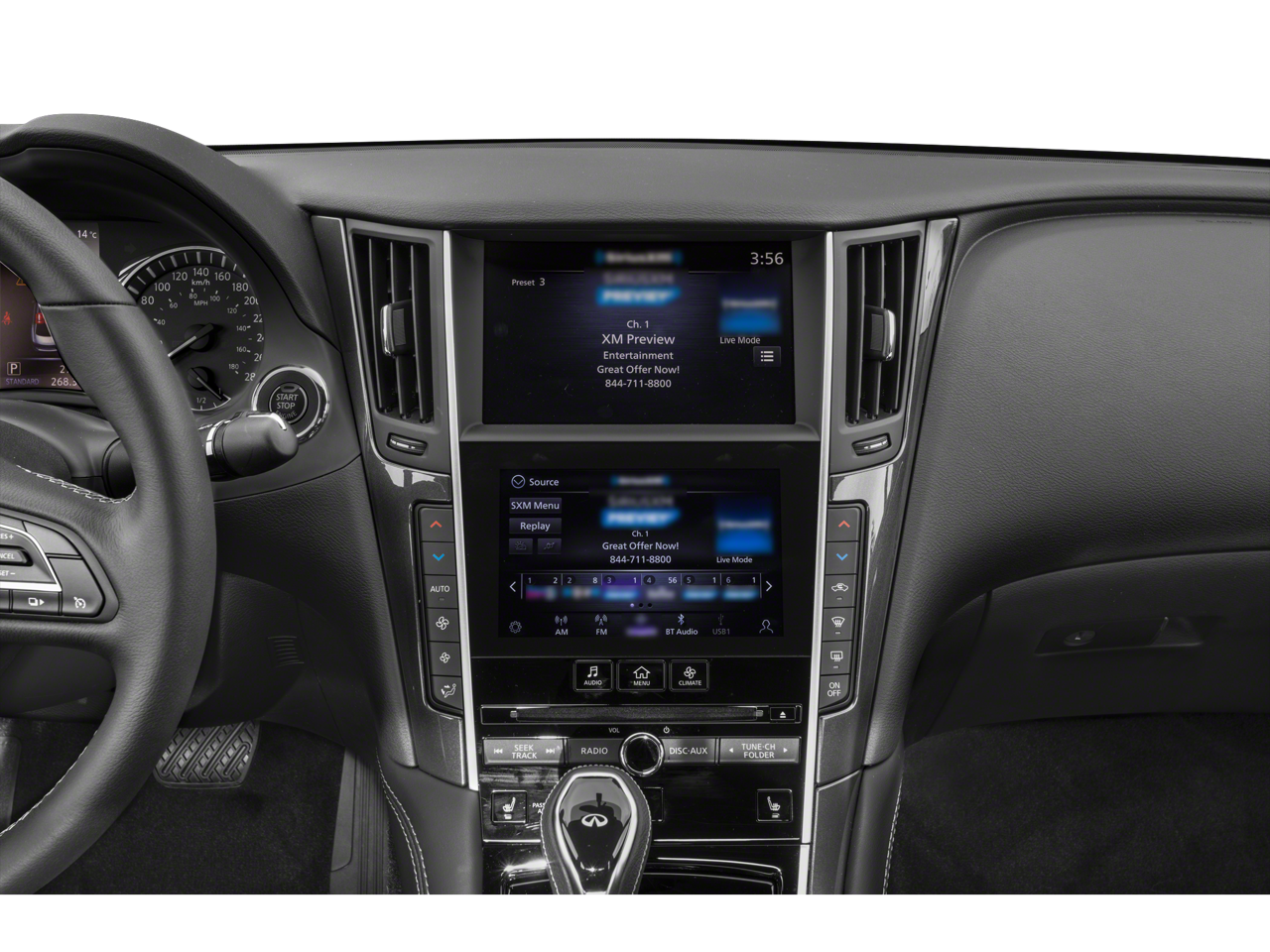 - Radio: INFINITI InTouch Dual HD Display System -inc: 16 speaker Bose Performance Series audio w/Bose Centerpoint simulated surround, wireless Apple CarPlay, Siri Eyes Free, Android Auto, Bluetooth® hands-free phone system w/text messaging assistant, voice recognition for audio, Bluetooth® and vehicle information, streaming audio via Bluetooth®, 2 illuminated USB connection ports (1 type A, 1 type C), auxiliary audio input, SiriusXM radio w/advanced audio features w/3-month complimentary trial and Wi-Fi hotspot
